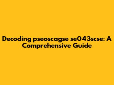 Decoding Pseoscagse Se043scse: A Comprehensive Guide