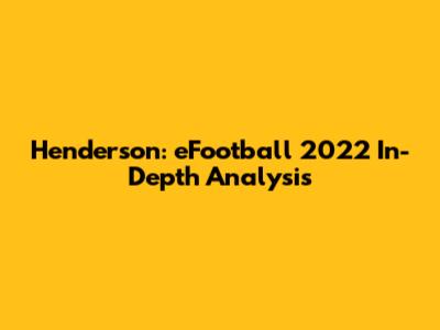 Henderson: EFootball 2022 In-Depth Analysis