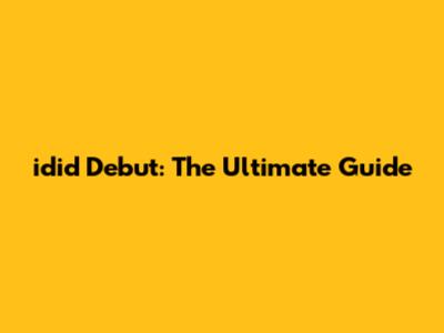 Idid Debut: The Ultimate Guide
