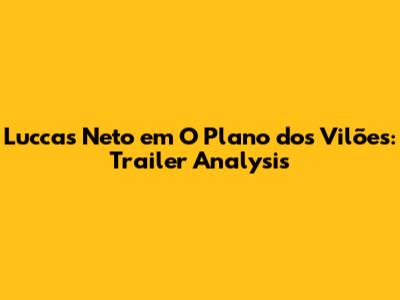 Luccas Neto Em O Plano Dos Vilões: Trailer Analysis