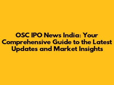 Hey guys! Let's dive deep into the exciting world of OSC IPO news in India. If you're an investor, a market enthusiast, or just curious about the buzz surrounding Initial Public Offerings (IPOs) in India, you've come to the right place. We'll break down everything you need to know about OSC, a company, and its potential IPO, covering the latest updates, market insights, and what it all means for you. So, buckle up, grab your favorite beverage, and let's get started!