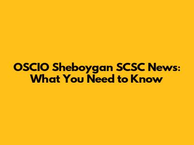 OSCIO Sheboygan SCSC News: What You Need To Know