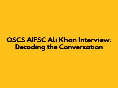 OSCS AIFSC Ali Khan Interview: Insights & Analysis