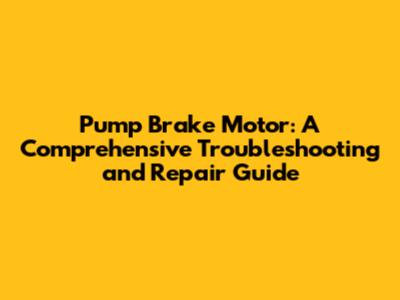 Troubleshooting Your Pump Brake Motor: A Step-by-Step Guide