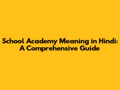 School Academy: Meaning & Significance In Hindi