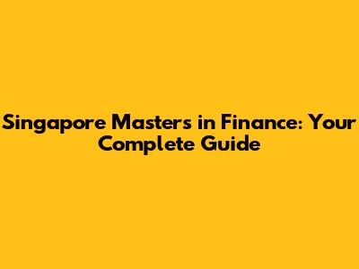 Singapore Masters In Finance: Your Complete Guide
