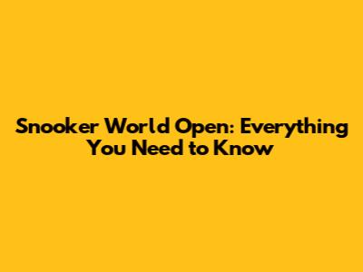 Snooker World Open: Everything You Need To Know