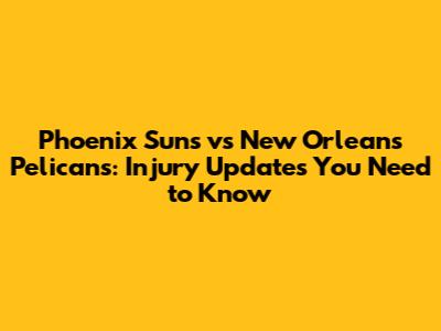 Suns Vs Pelicans: Injury Updates You Need To Know