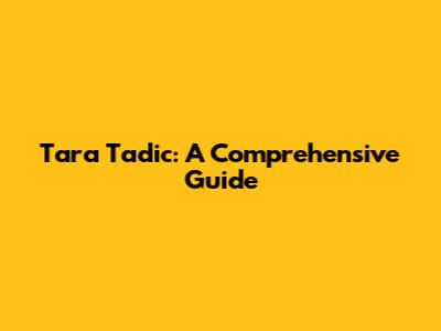 Tara Tadic: A Comprehensive Guide