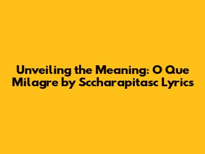 Unveiling The Meaning: O Que Milagre By Sccharapitasc Lyrics