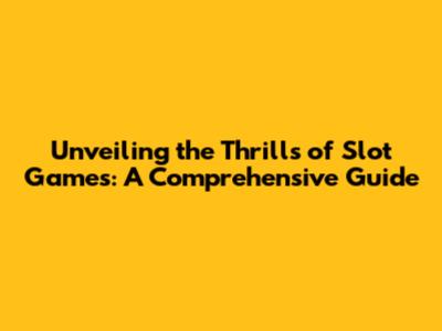 Unveiling The Thrills Of Slot Games: A Comprehensive Guide